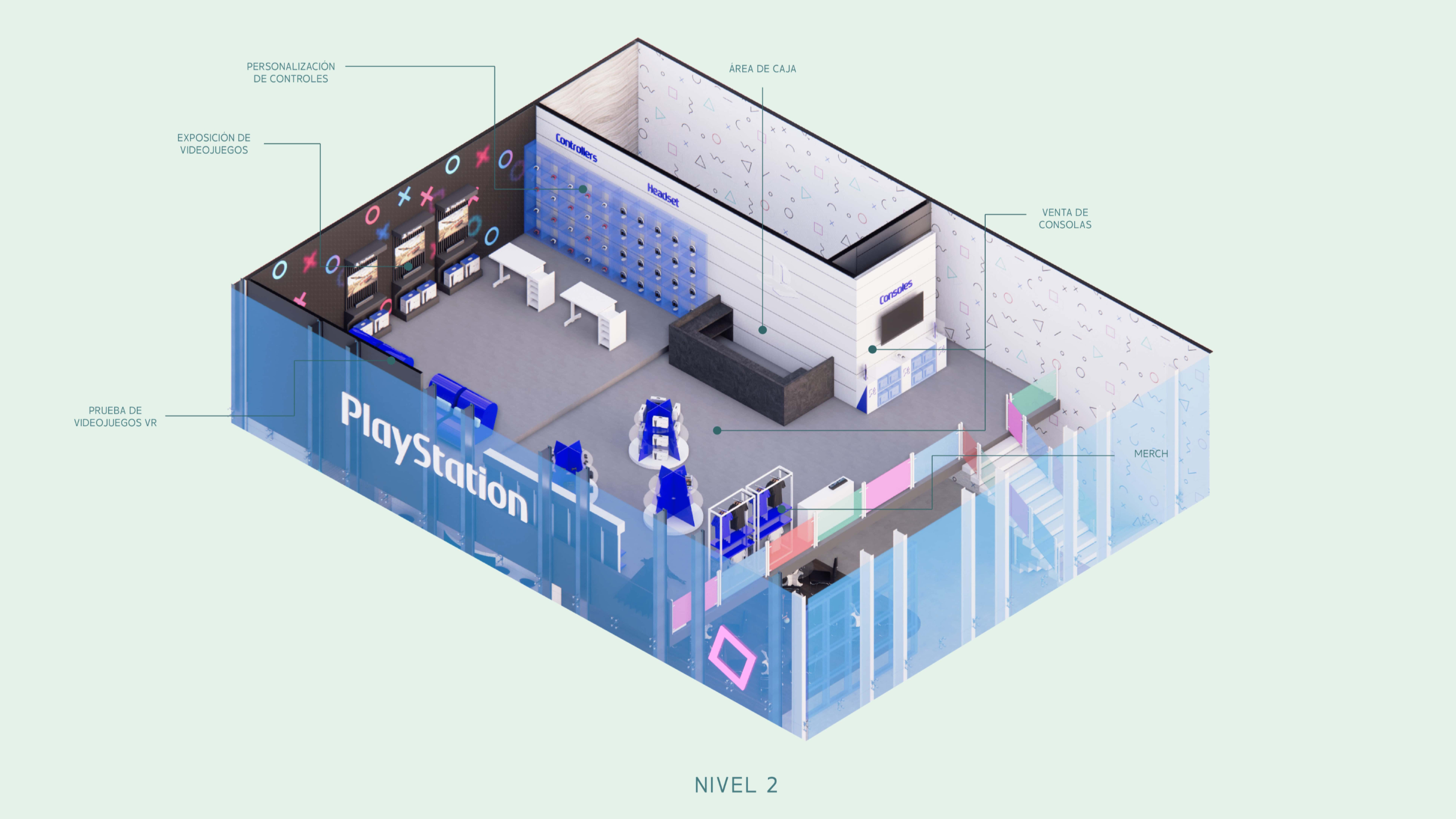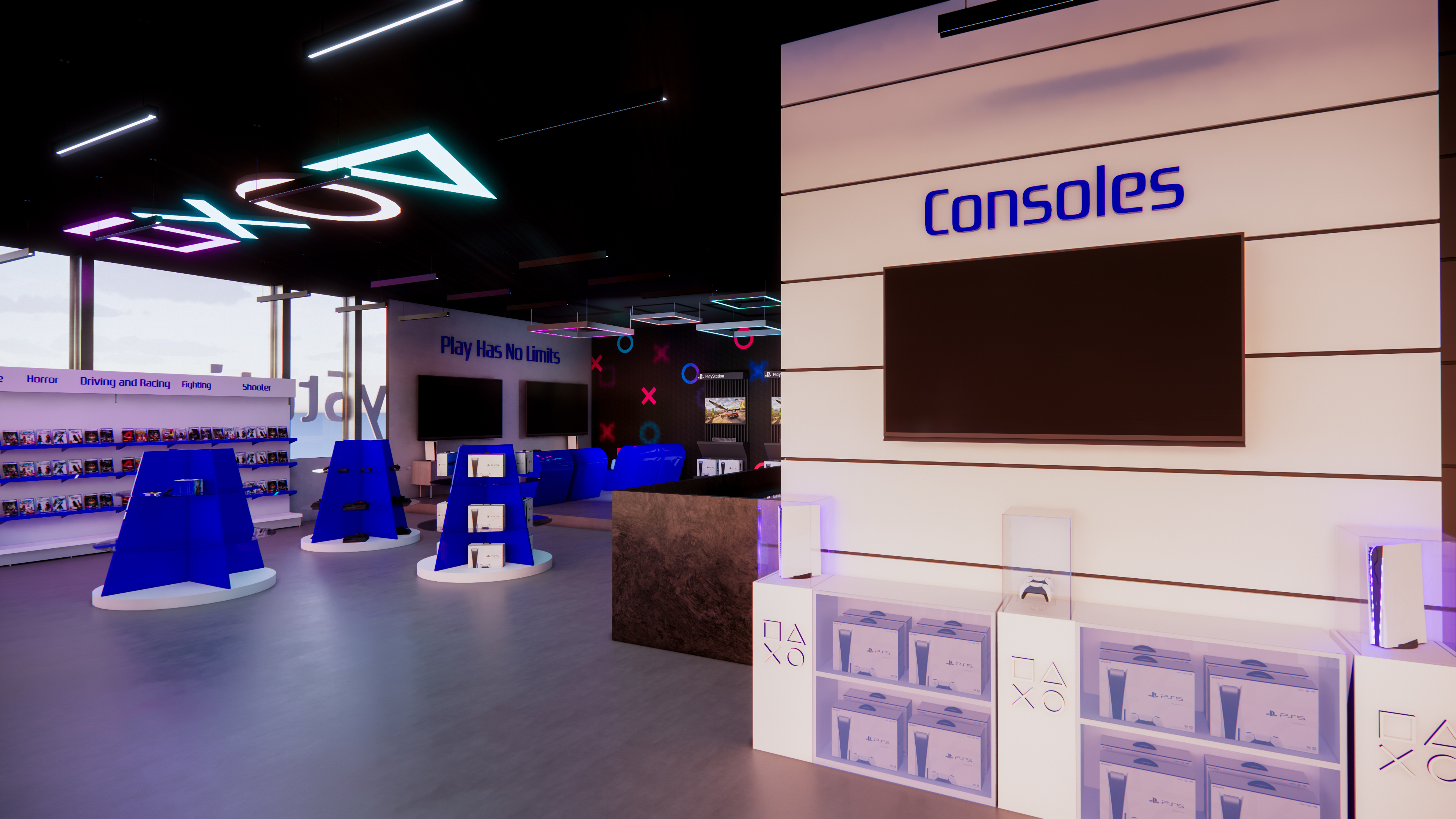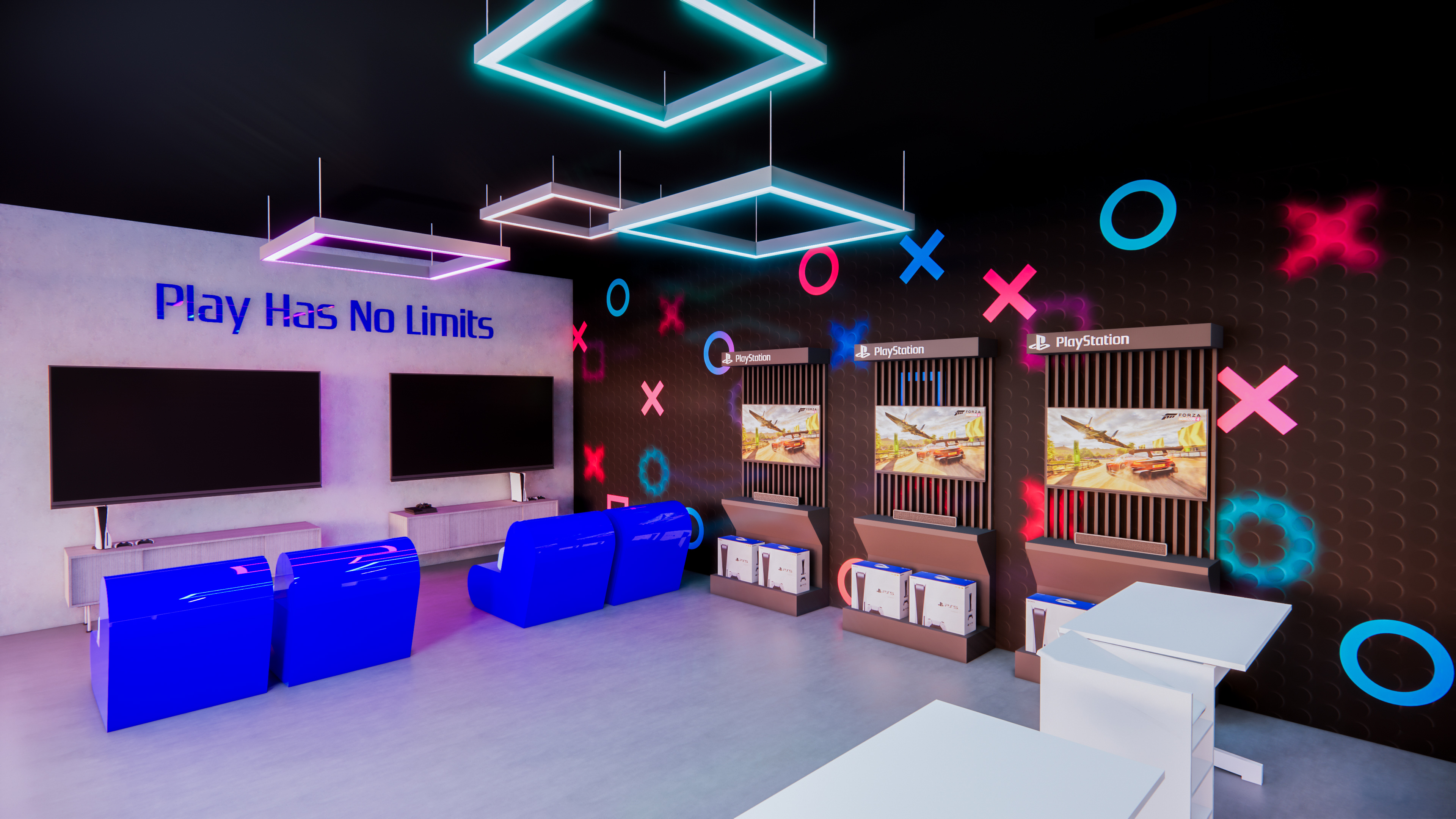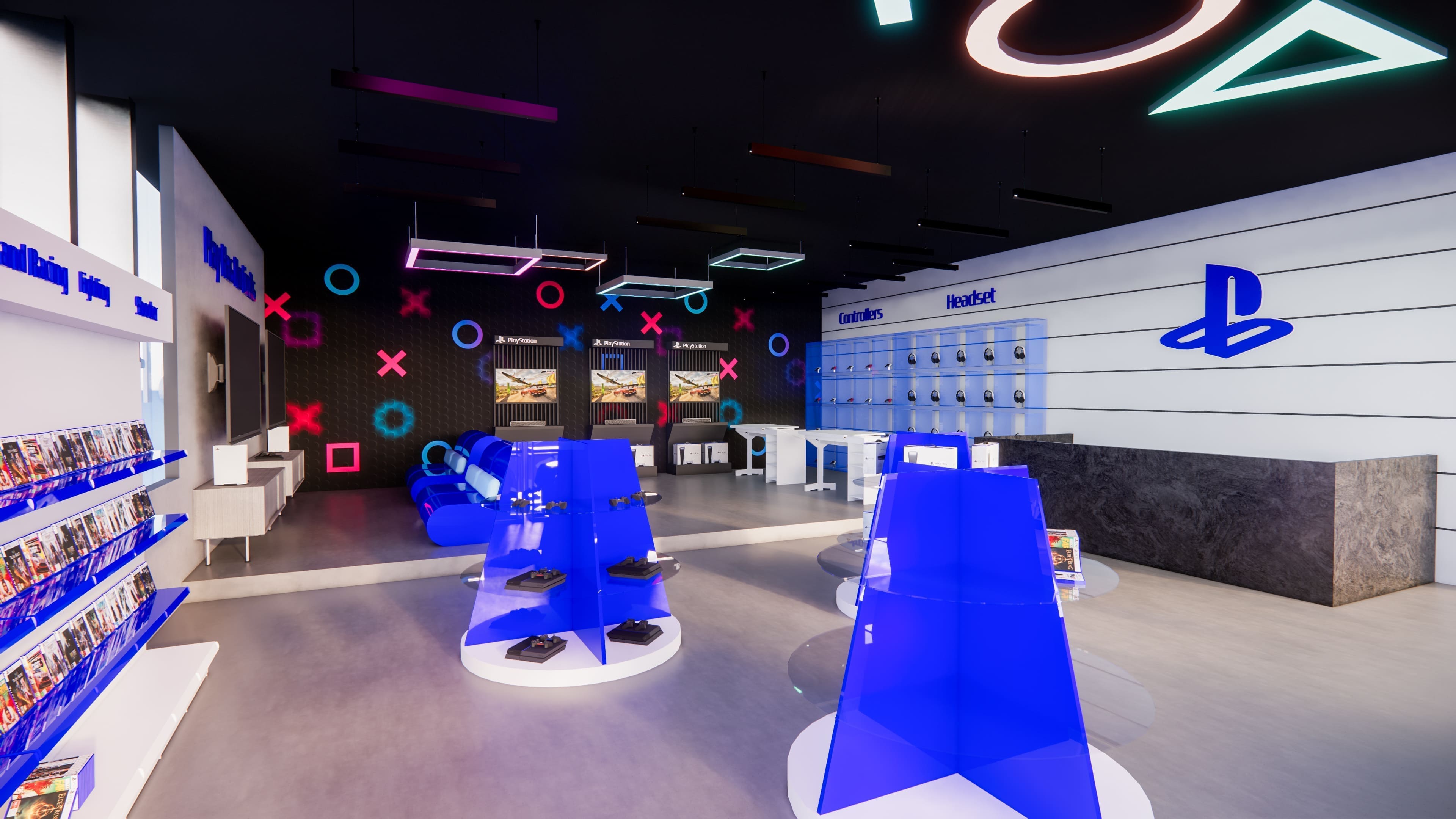 El diseño de la Flagship Store de PlayStation, un espacio que combina la esencia de la marca con una experiencia de compra única. Este proyecto está pensado para ofrecer a los clientes un ambiente acogedor y atractivo, donde la diversión y la tecnología se unen con colores vibrantes que reflejan la identidad de PlayStation.