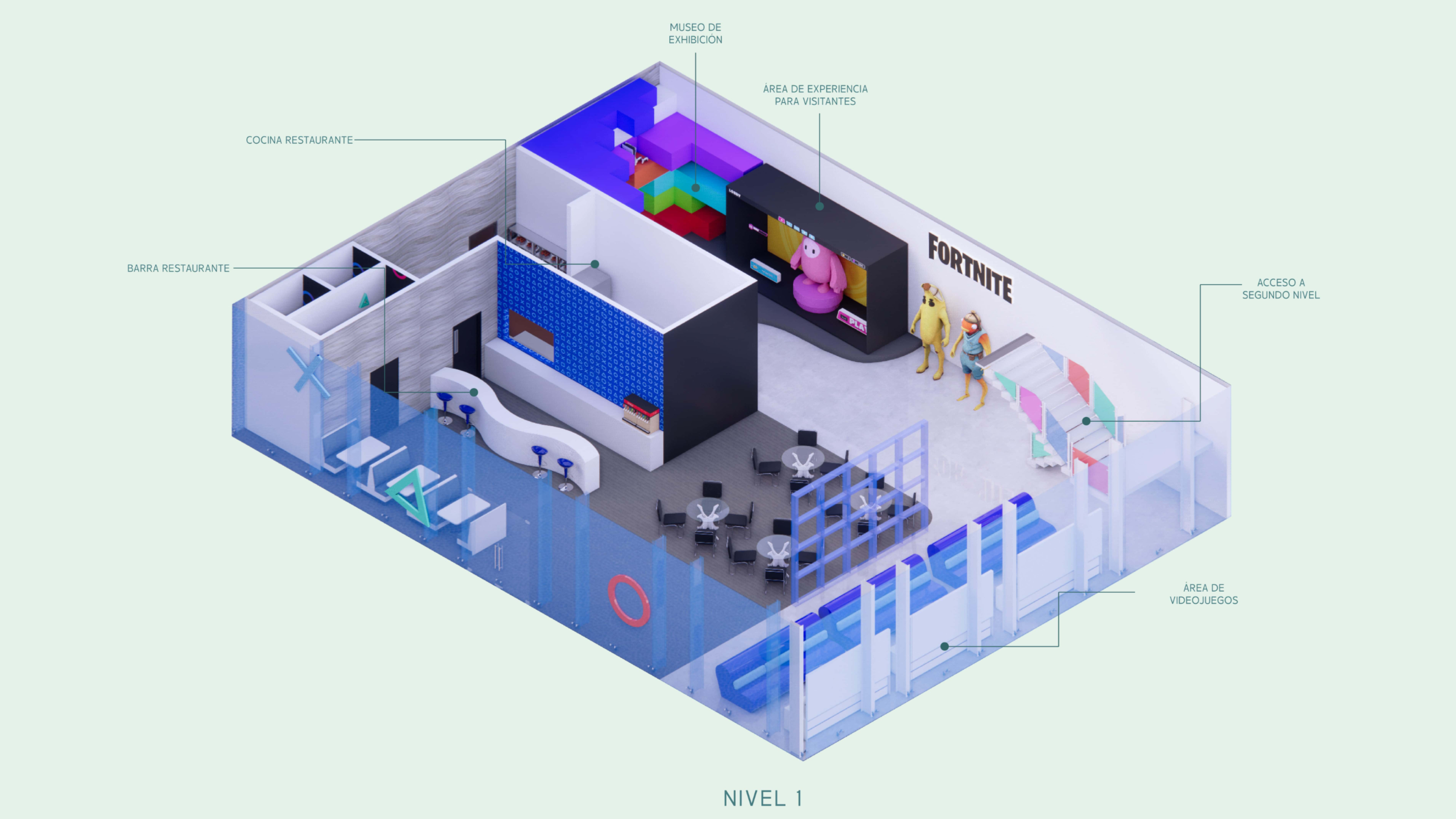 El proyecto tiene como objetivo ofrecer una experiencia inmersiva para los fanáticos de la marca, creando un espacio donde puedan disfrutar de sus juegos favoritos y personalizar sus controles y equipos. Este lugar, diseñado para ser atractivo y moderno, incluye acabados en acrílico y vidrio, así como una iluminación con luces LED que realzará la atmósfera vibrante. Además, se incorporarán elementos y objetos característicos del mundo de los videojuegos, creando un ambiente único en el que los usuarios podrán convivir entre amigos y compartir su pasión por los juegos.