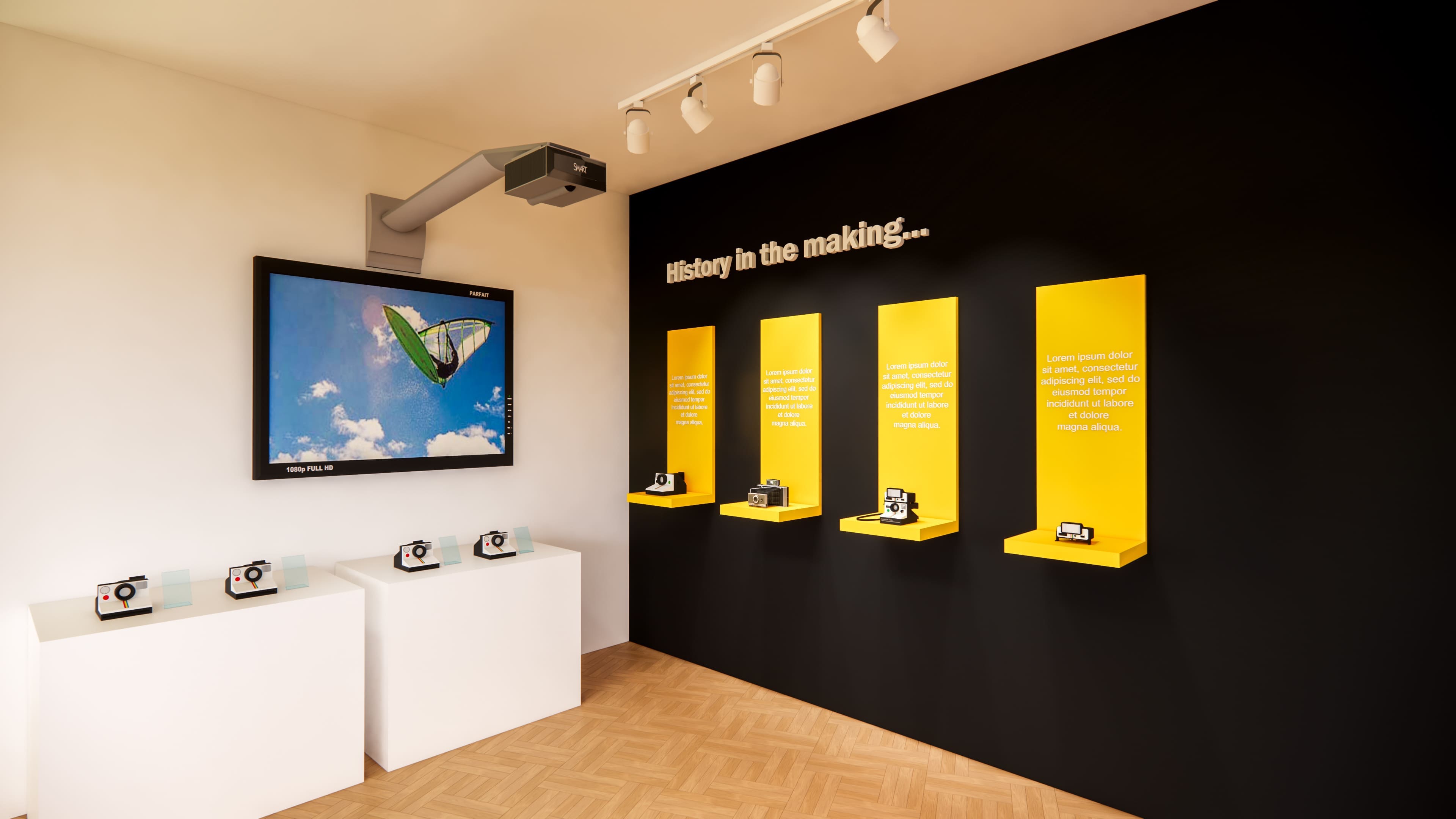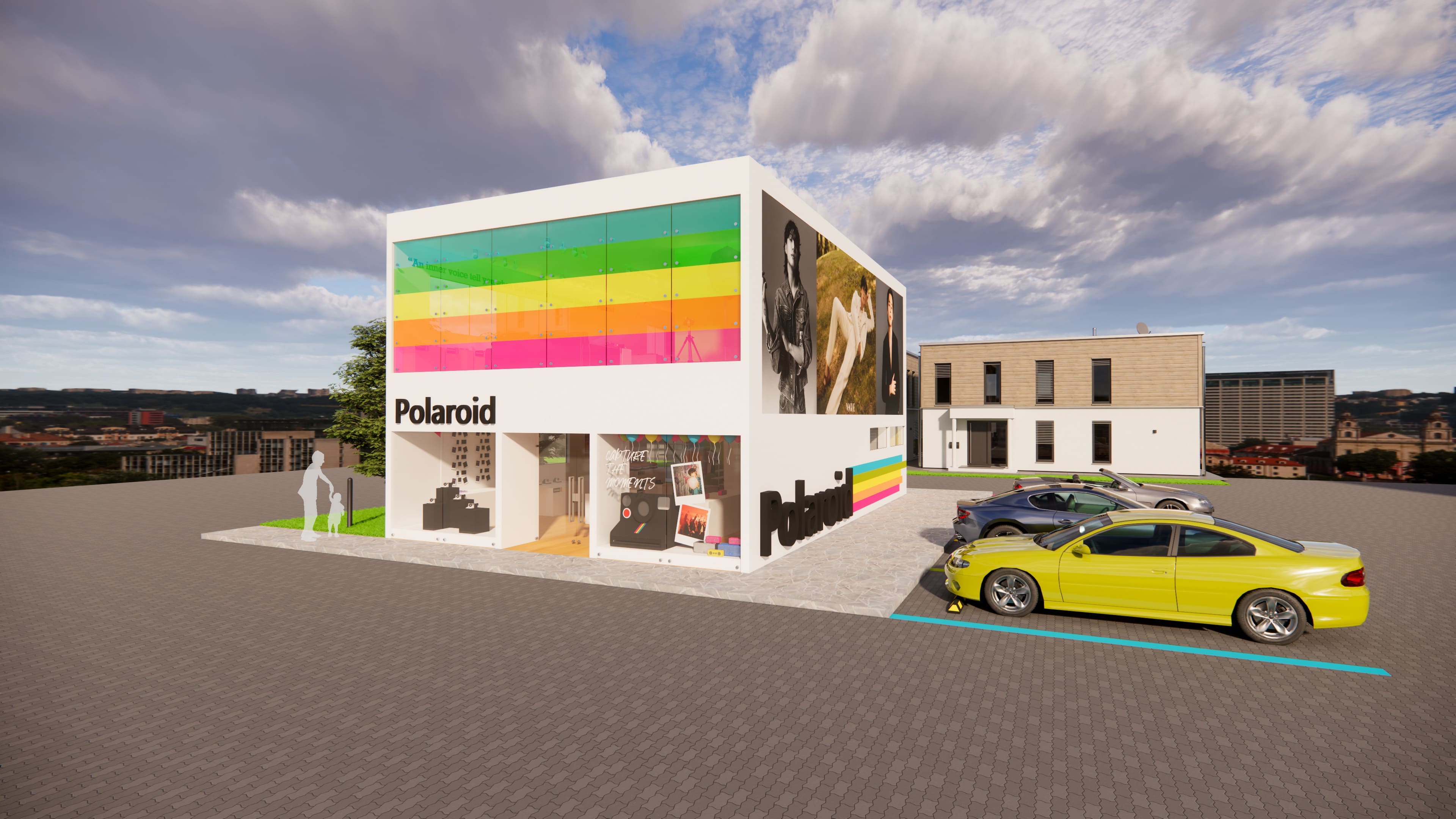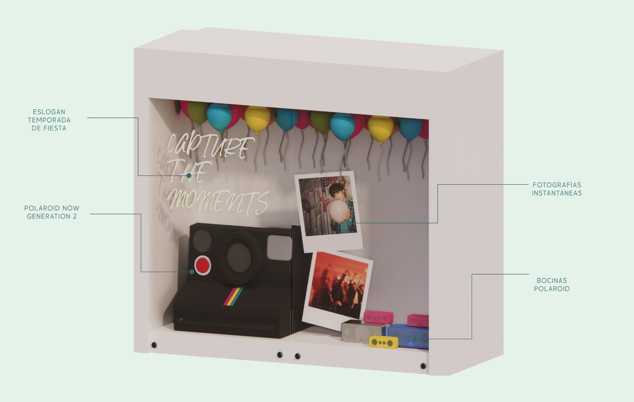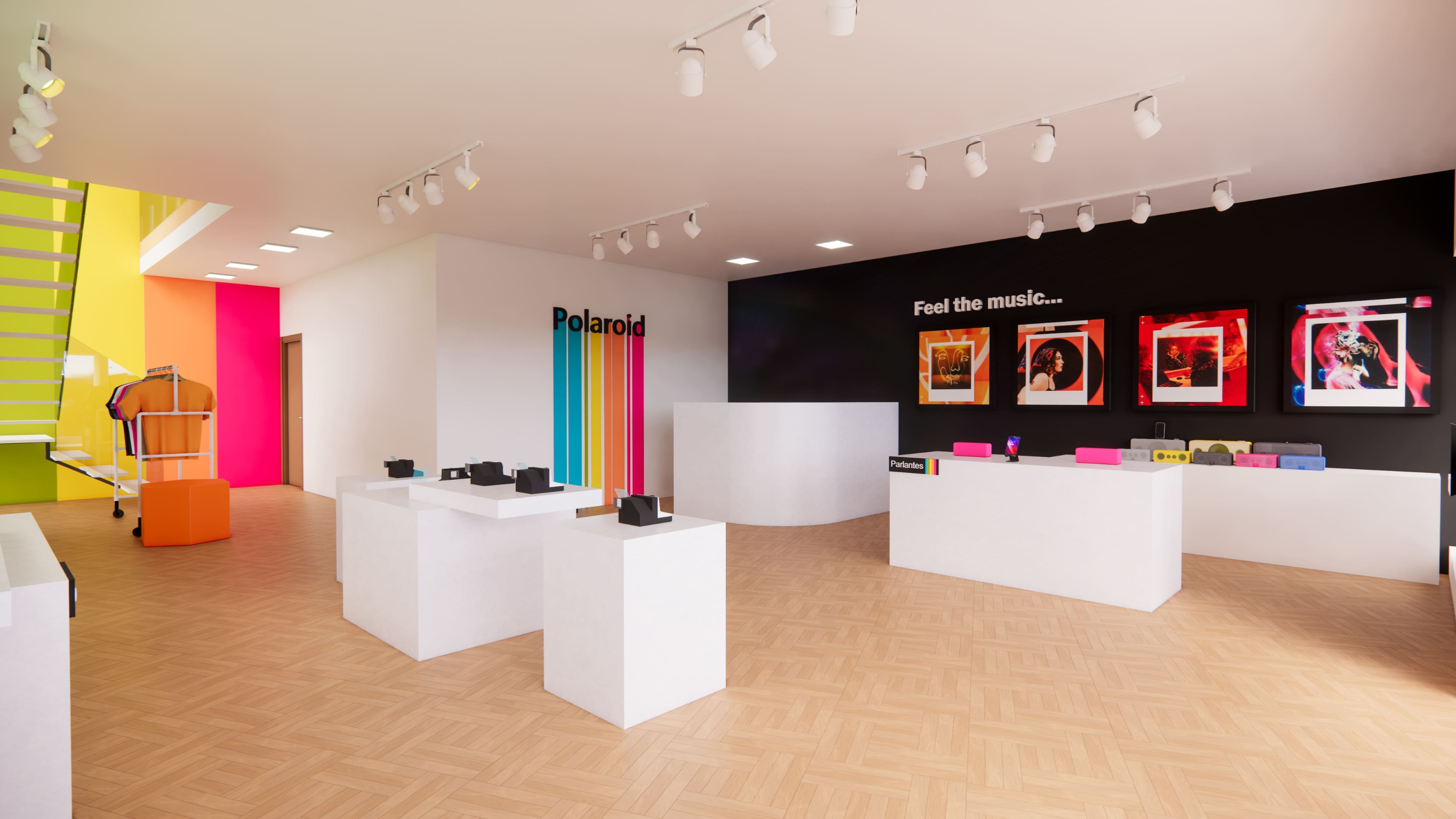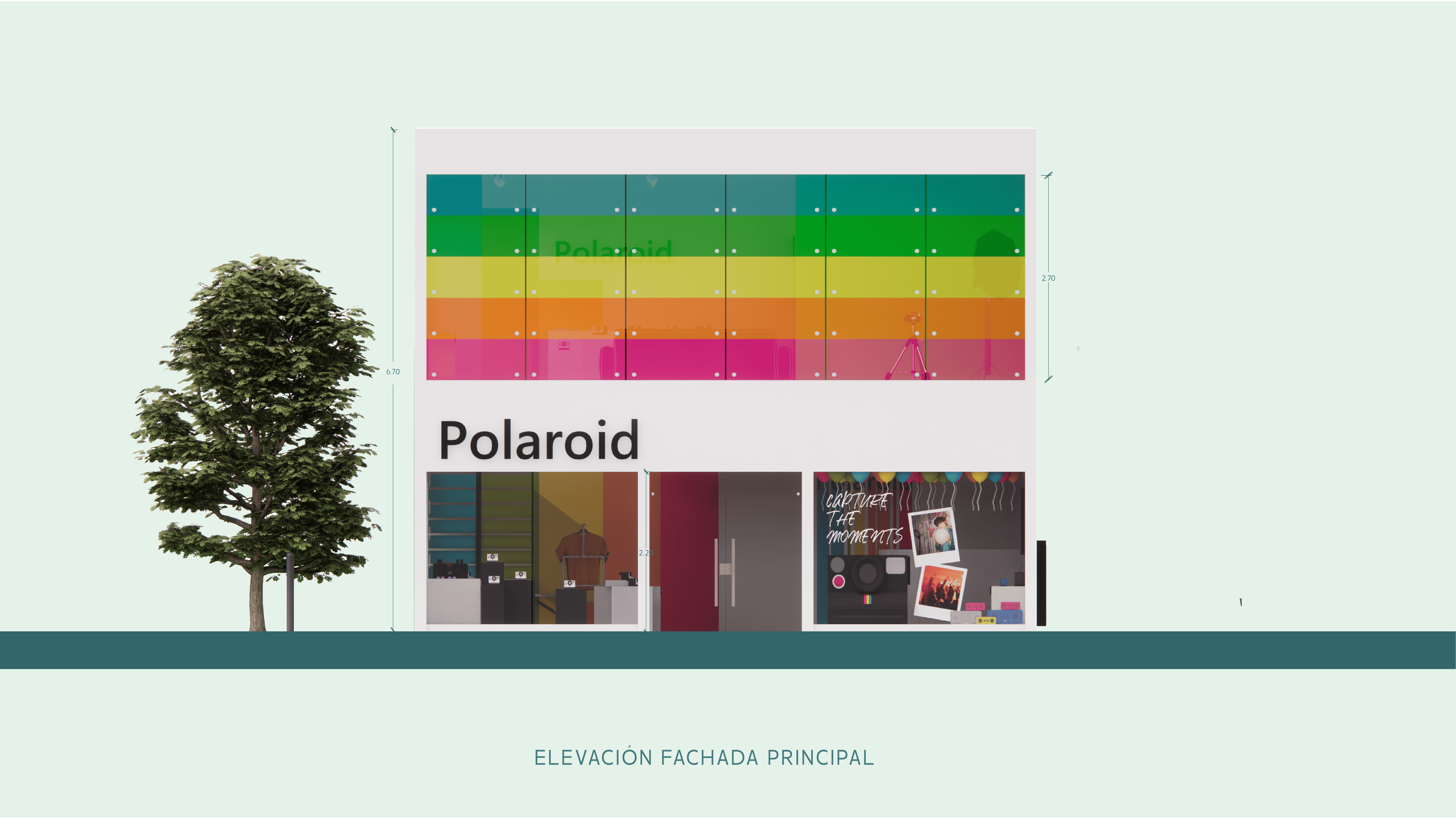 Polaroid, una Free Standing Store que abarca un área de 300 m² y se centra en crear un ambiente que refleje la esencia y la identidad de la marca. El diseño busca ofrecer una experiencia inmersiva al cliente, fusionando estética y funcionalidad.