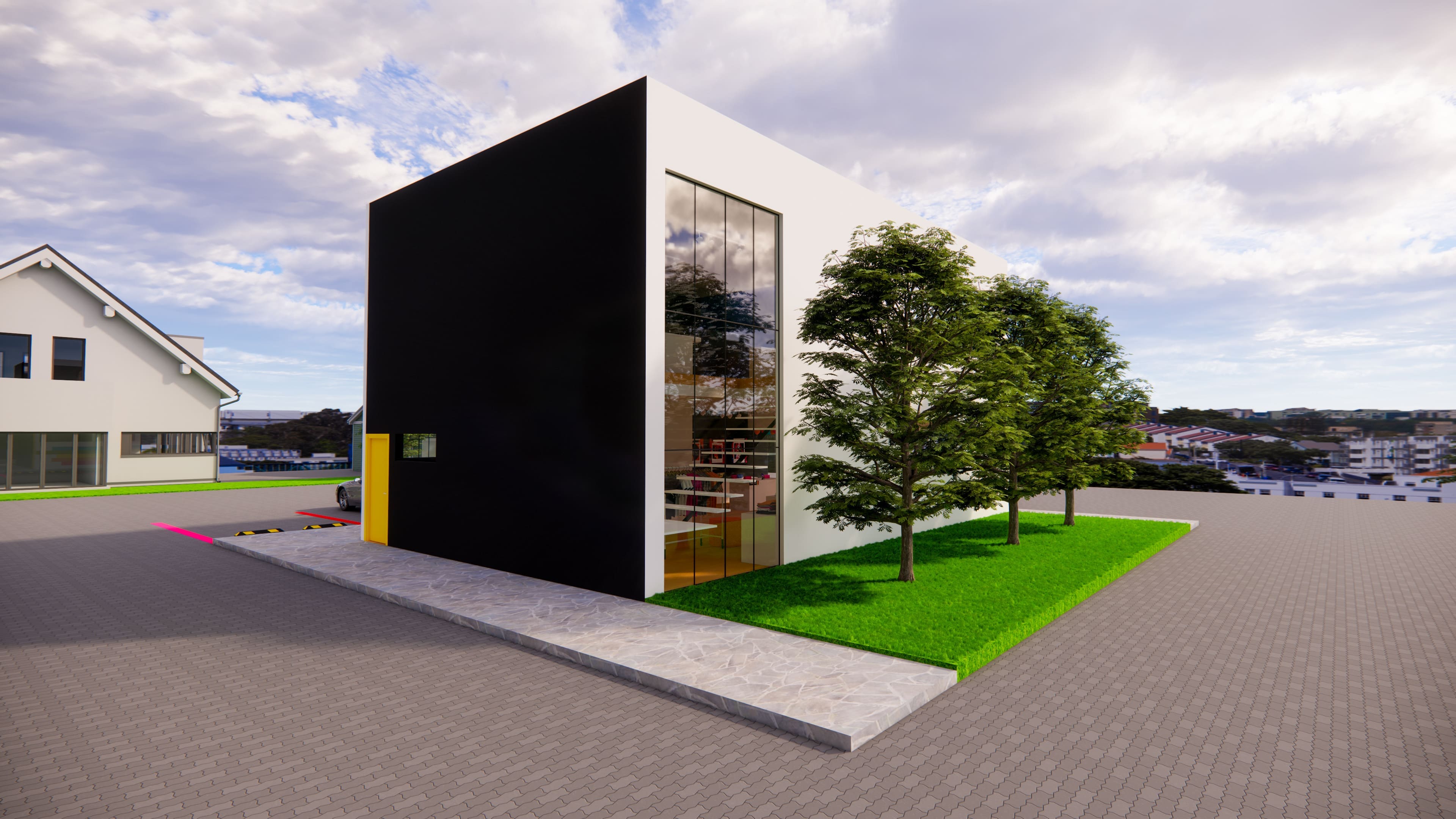 El proyecto consiste en el diseño y desarrollo de una tienda insignia de dos niveles. En el primer nivel se encuentra el área de venta de productos, donde los clientes pueden explorar y adquirir artículos. En el segundo nivel, se dedica un espacio a la experiencia de prueba, que incluye un estudio fotográfico y áreas específicas para probar cámaras e impresoras, permitiendo a los clientes interactuar de forma práctica.
